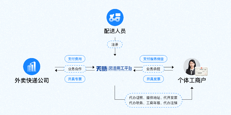 帮助配送人员向个体工商户转型;助力企业人资组织结构优化,打造创新型新业态企业
