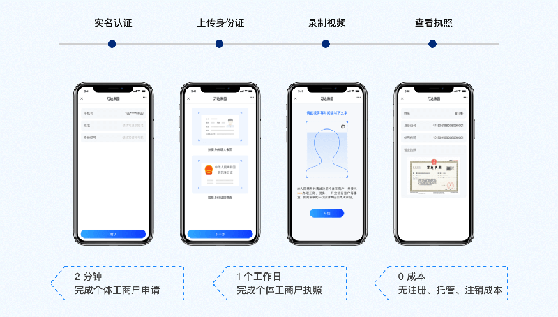 全线上化智能注册系统,两分钟完成线上注册,最快当天出营业执照